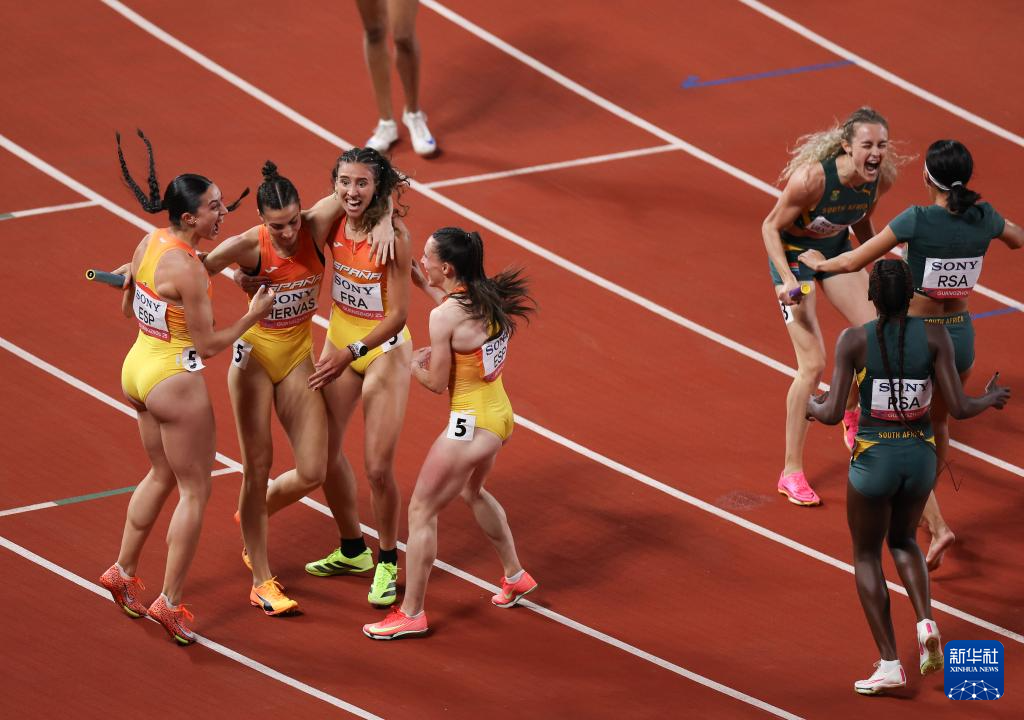 当日,在广州天河体育中心举行的2025年世界田联接力赛女子4x400米接力决赛中,西班牙队以3分24秒13的成绩获得冠军。