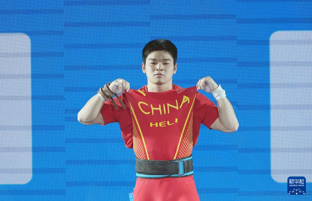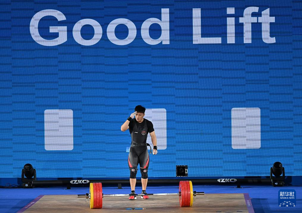 5月11日,印度尼西亚选手阿卜杜拉在比赛中庆祝最后一次试举成功并打破挺举世界纪录。最终,他获得抓举、挺举、总成绩三项冠军,并以205公斤的成绩打破挺举世界纪录。
