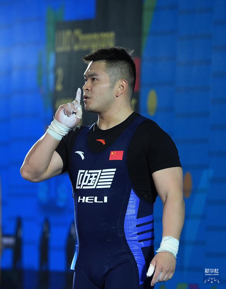 5月12日,中国选手罗崇阳在比赛中庆祝试举成功。最终,他获得抓举、总成绩两项冠军和挺举亚军。