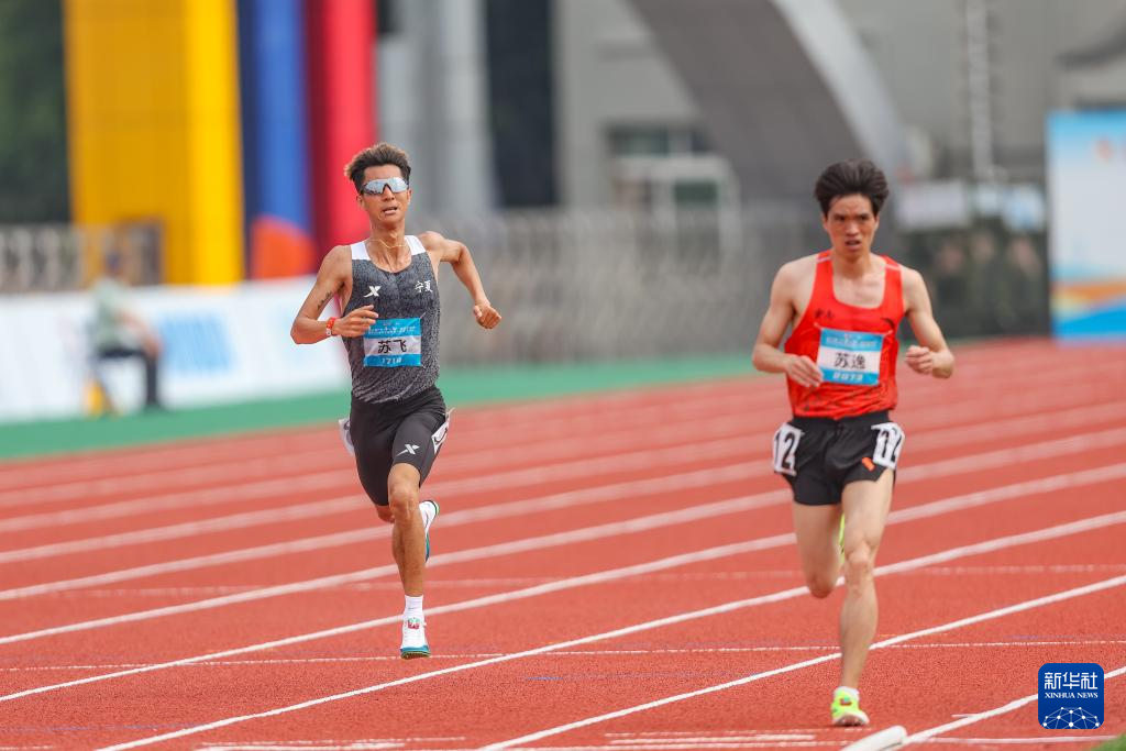 5月14日,宁夏队选手苏飞(左)在决赛中冲线。最终,他以14分07秒99的成绩夺得冠军。