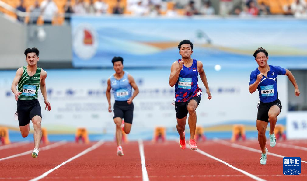 当日,第三届“一带一路”田径邀请赛暨2025年全国田径大奖赛第三站男子100米决赛在重庆举行。泰国选手布里蓬·汶颂以10秒15的成绩夺得冠军,中国广西队选手邓信锐以10秒20的成绩获得亚军,中国江苏队选手陆伟一以10秒30的成绩获得季军。