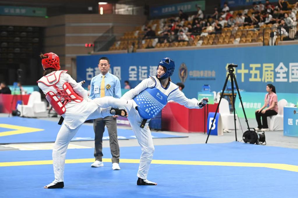 开赛首日决出两项冠军,内蒙古女将王欢在女子67公斤以上级决赛中,采取防守反击态势赢下了与黑龙江队选手王晓飞的鏖战;男子58公斤级的比拼中,河南队蒋刘新凭借更精湛的腿法和更积极的进攻,击败山东队选手李德智夺得冠军。