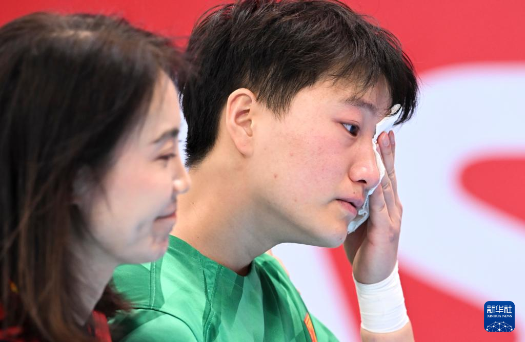 5月17日,中国队球员曹嘉仪(左)在赛后落泪。