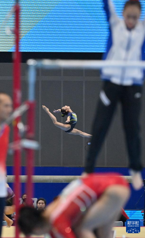 5月18日,广东思腾队选手柯沁沁在女子团体决赛高低杠比赛中。最终,广东思腾队获得亚军。