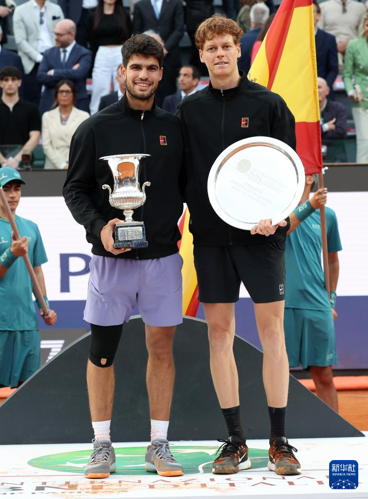 5月18日,阿尔卡拉斯(左)和辛纳在颁奖仪式上。
