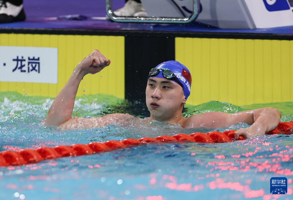当日,在广东深圳举行的2025年全国游泳冠军赛男子50米蝶泳决赛中,广东体彩队选手陈俊儿获得冠军。