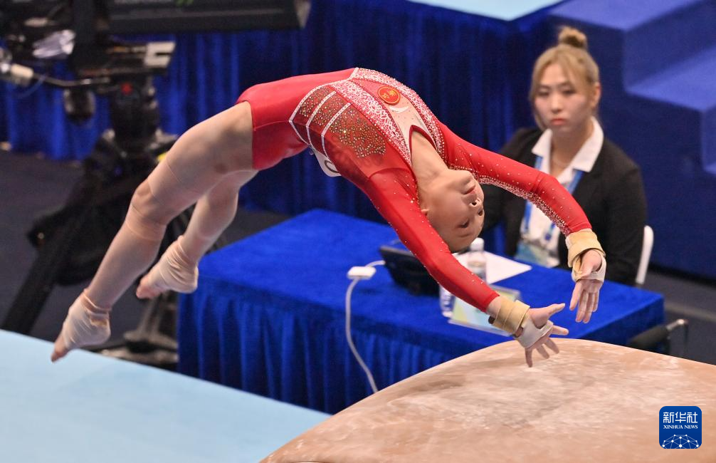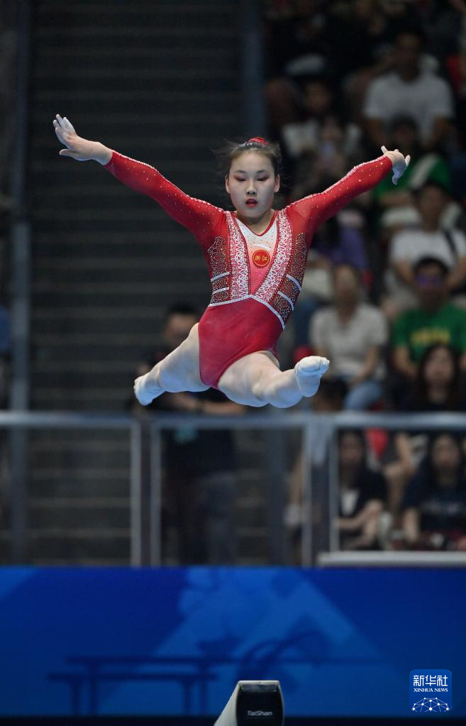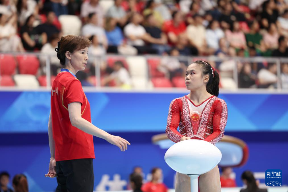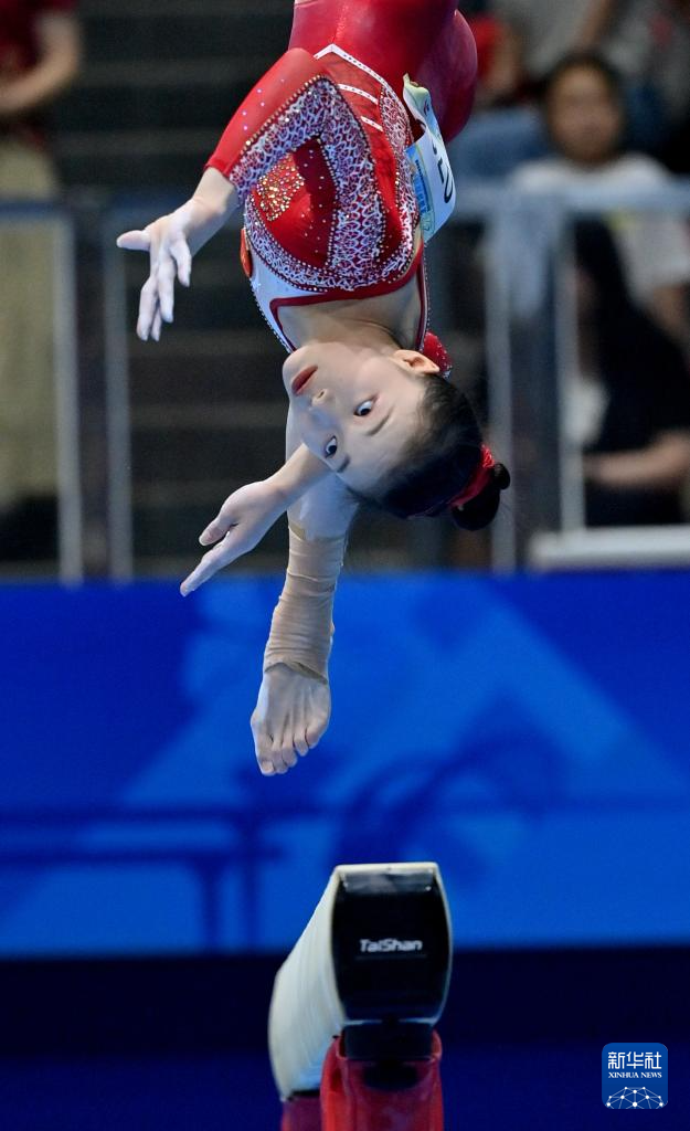 5月18日,浙江队选手陈芯韵在女子团体决赛跳马比赛中。最终,浙江队夺得冠军。