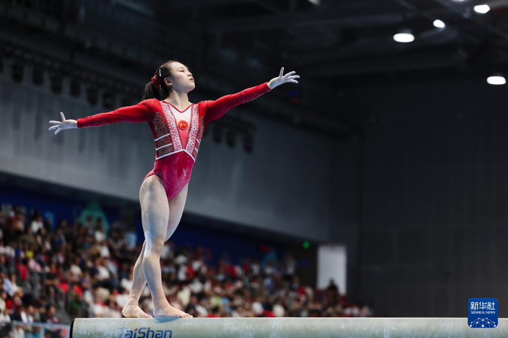 当日,2025年全国体操锦标赛暨第十五届全国运动会体操成年组资格赛女子团体决赛在广西南宁举行。
