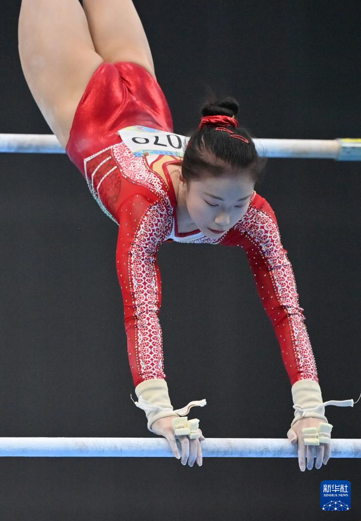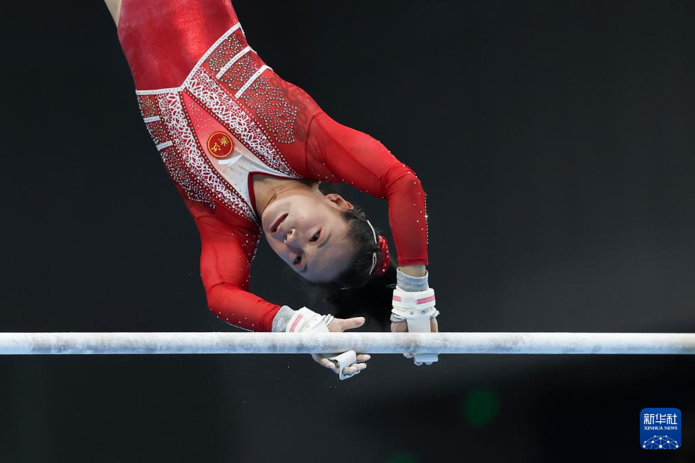 5月18日,浙江队选手张清颖在女子团体决赛高低杠比赛中。最终,浙江队夺得冠军。