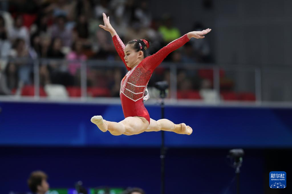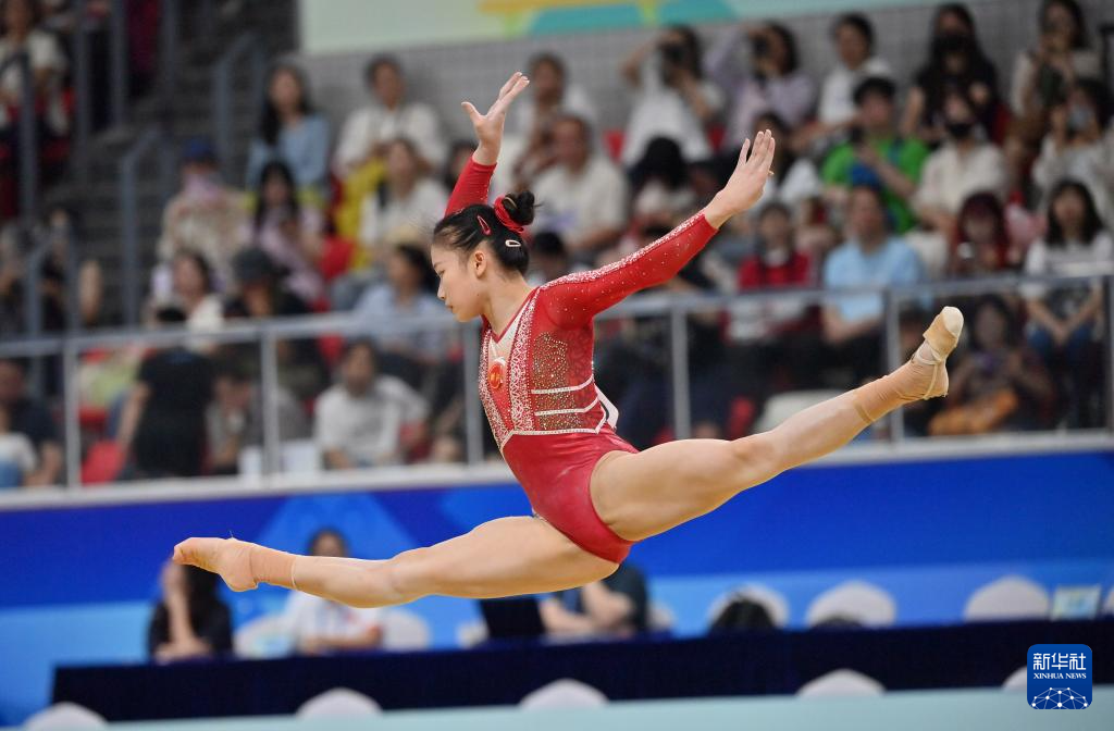5月18日,浙江队选手金孝轩在女子团体决赛自由操比赛中。最终,浙江队夺得冠军。
