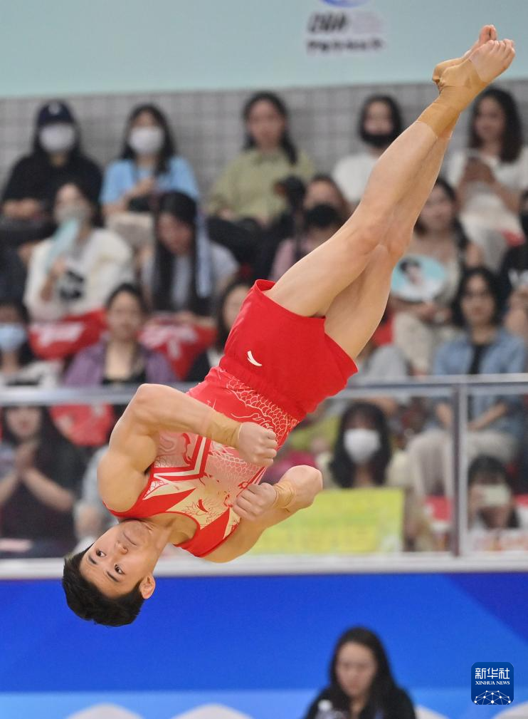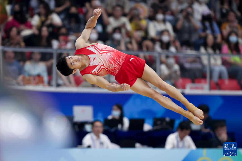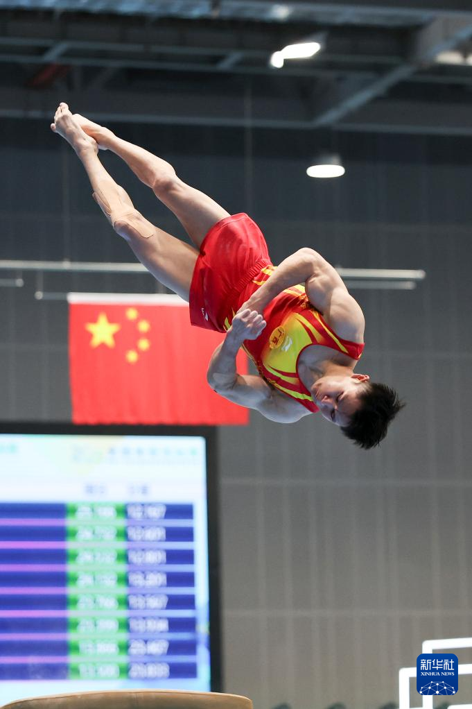 5月19日,江苏队选手侍聪在跳马比赛中。最终,他获得男子个人全能亚军。