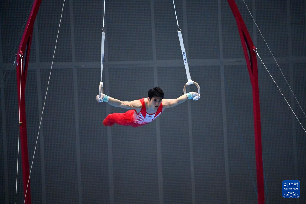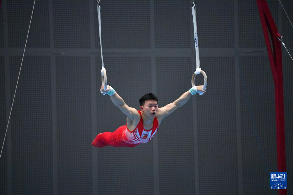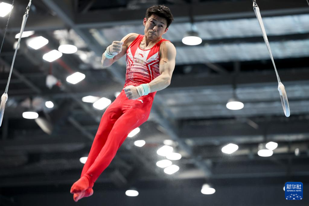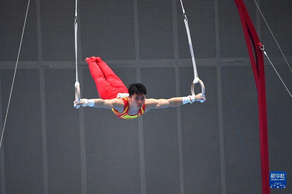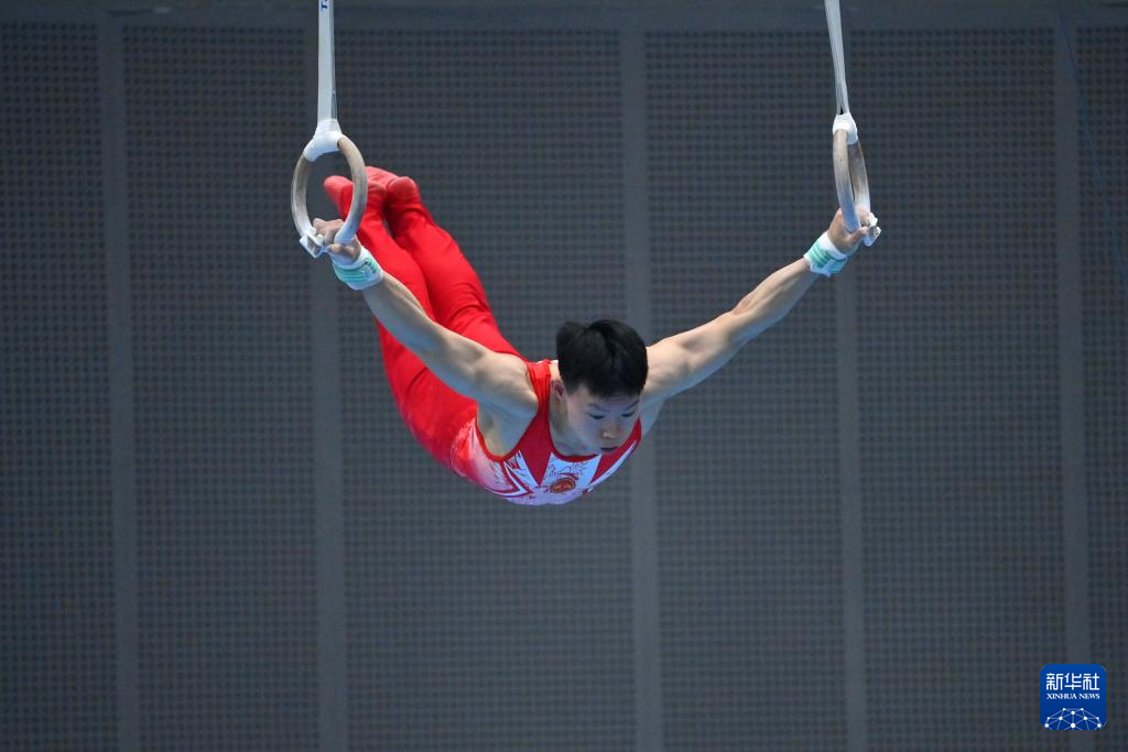 5月19日,江苏队选手侍聪在吊环比赛中。最终,他获得男子个人全能亚军。