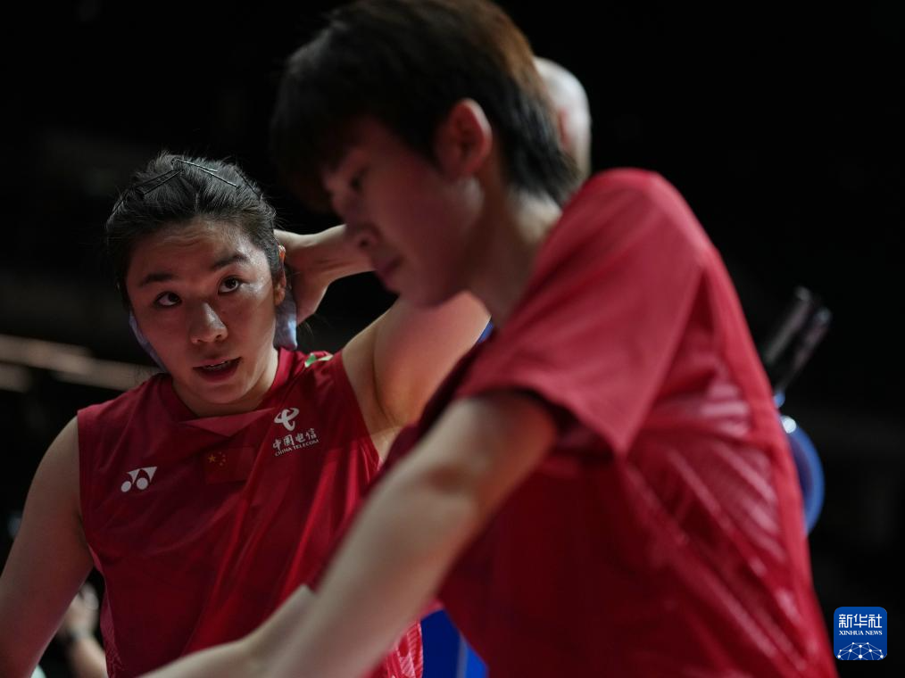 5月20日,贾一凡(右)/张殊贤在比赛中交流。