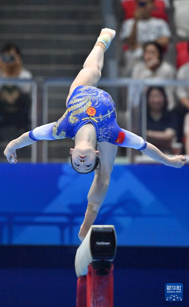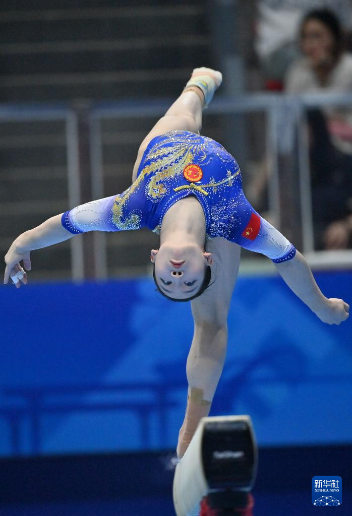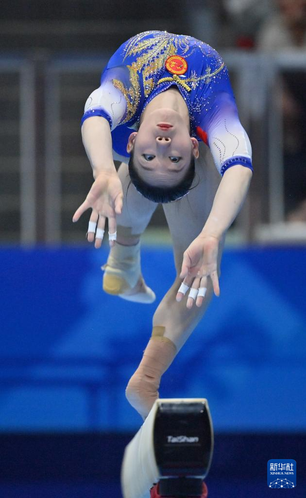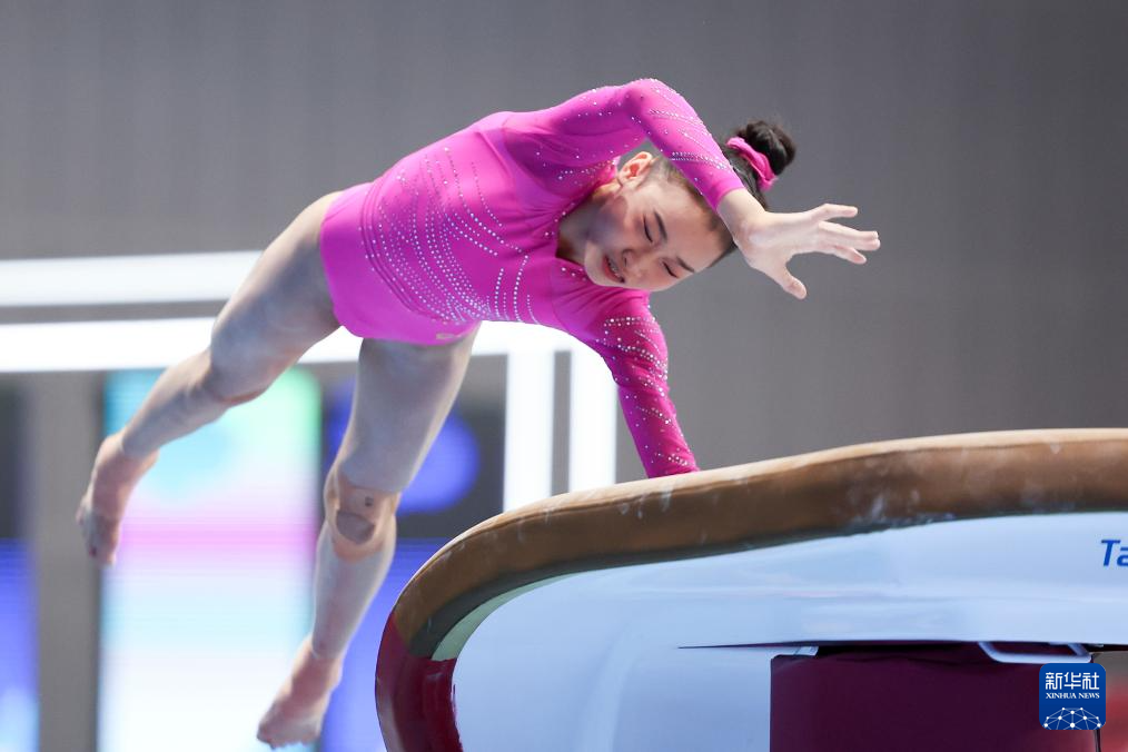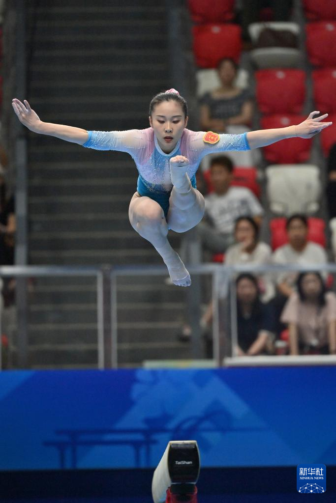 5月20日,上海队选手秦心怡在跳马比赛中。最终,她获得女子个人全能亚军。
