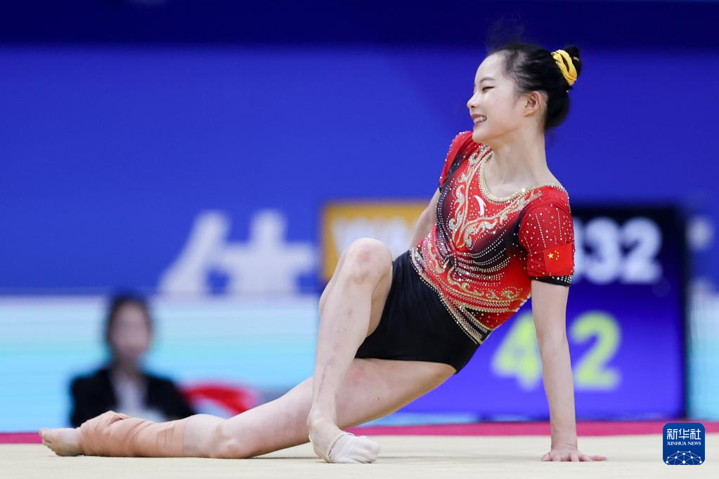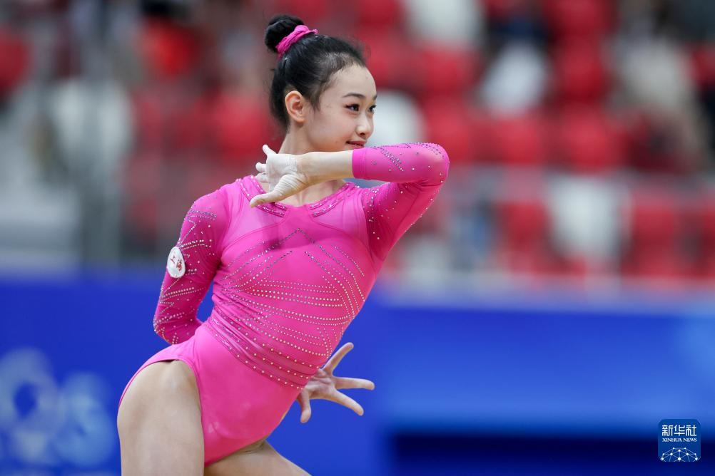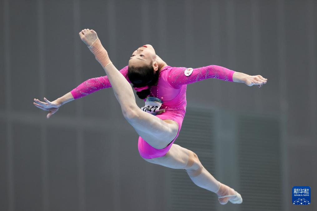 5月20日,上海队选手秦心怡在自由操比赛中。最终,她获得女子个人全能亚军。