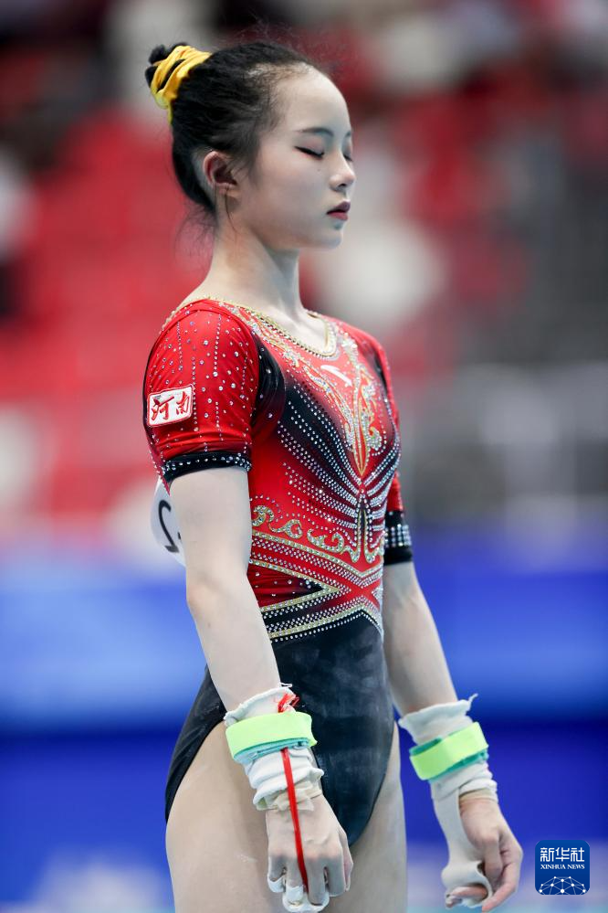 5月20日,河南队选手张怡涵在平衡木比赛中失误后重新上木。最终,她获得女子个人全能季军。