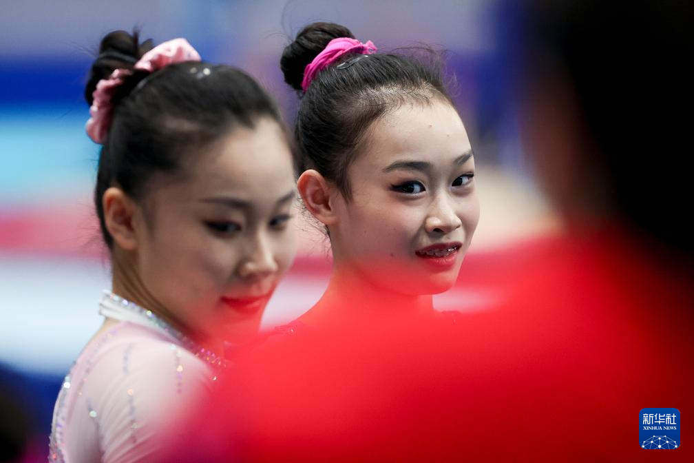 5月20日,上海队选手秦心怡(右)在比赛间隙。最终,她获得女子个人全能亚军。