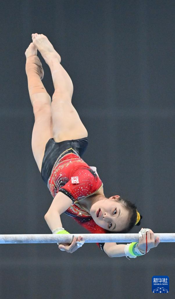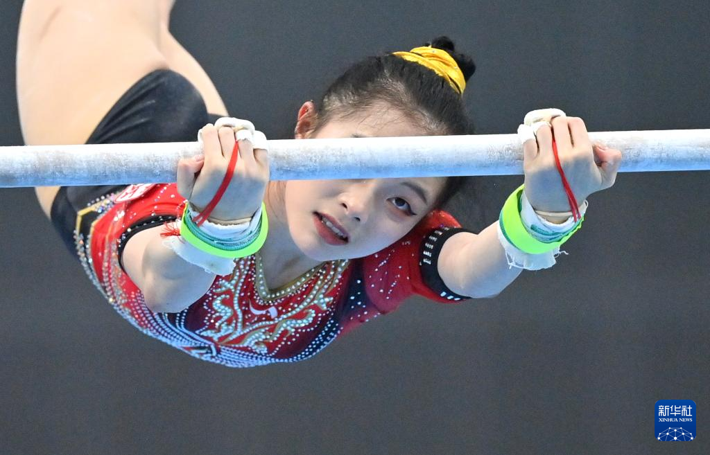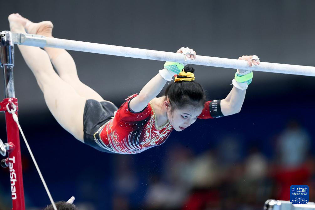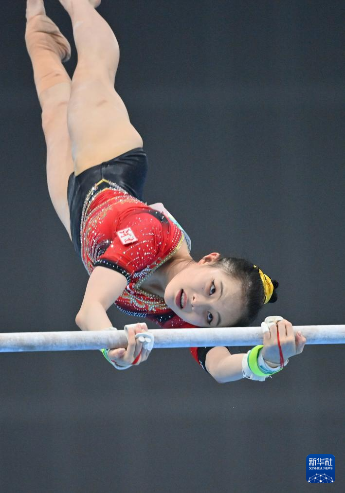 5月20日,北京队选手杜思雨在高低杠比赛中。最终,她获得女子个人全能第七名。