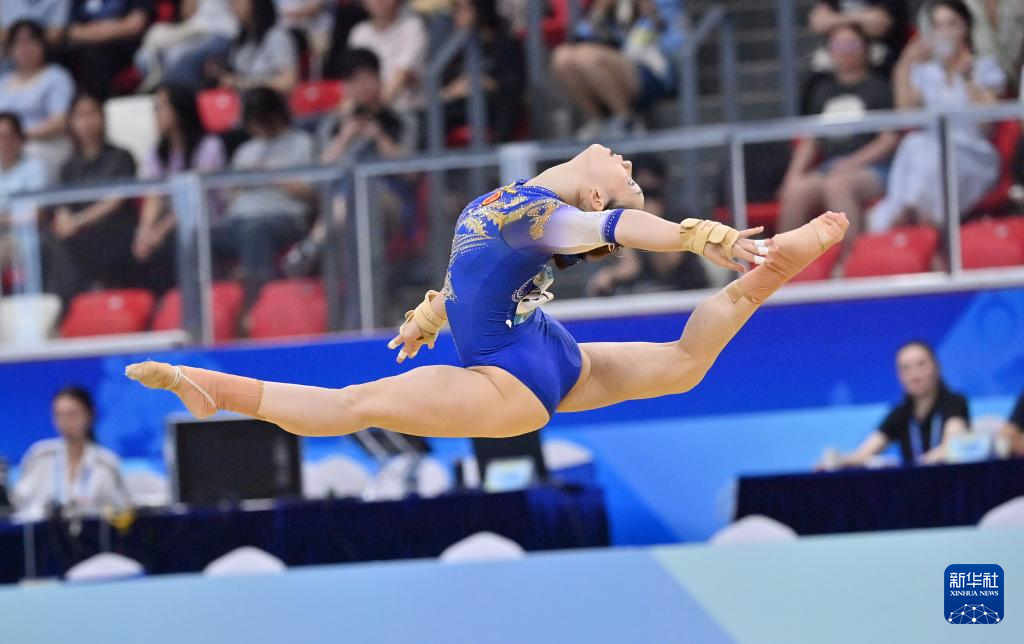 5月20日,湖南高速队选手周雅琴在自由操比赛中。最终,她获得女子个人全能第六名。