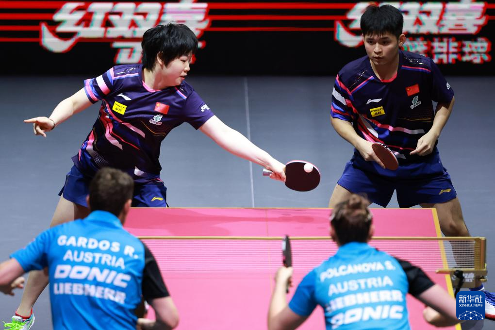 当日,在卡塔尔多哈举行的2025年世界乒乓球锦标赛混合双打八分之一决赛中,中国组合林诗栋/蒯曼3比0战胜奥地利组合加多斯/波尔卡诺娃,晋级八强。