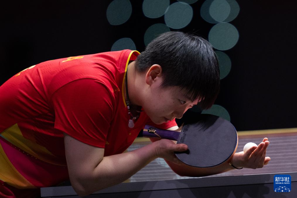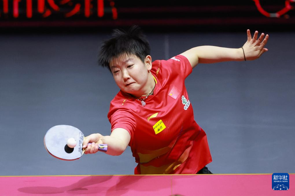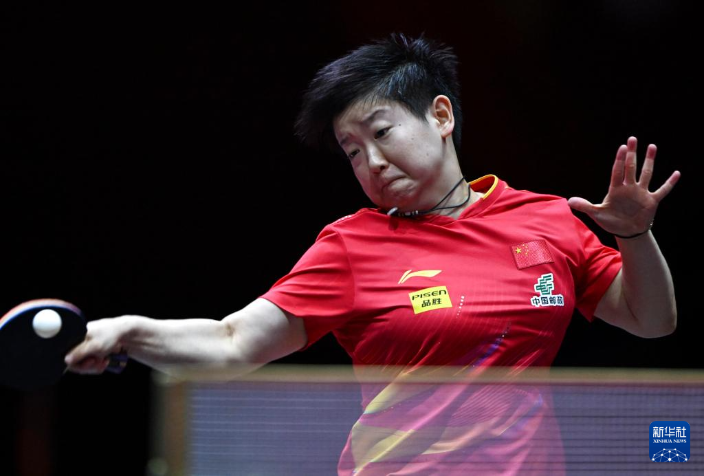 5月21日,孙颖莎在比赛中回球。