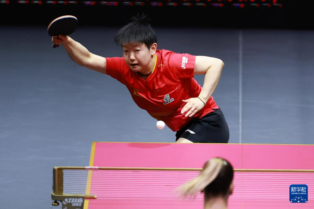 5月21日,孙颖莎(左)在比赛中。