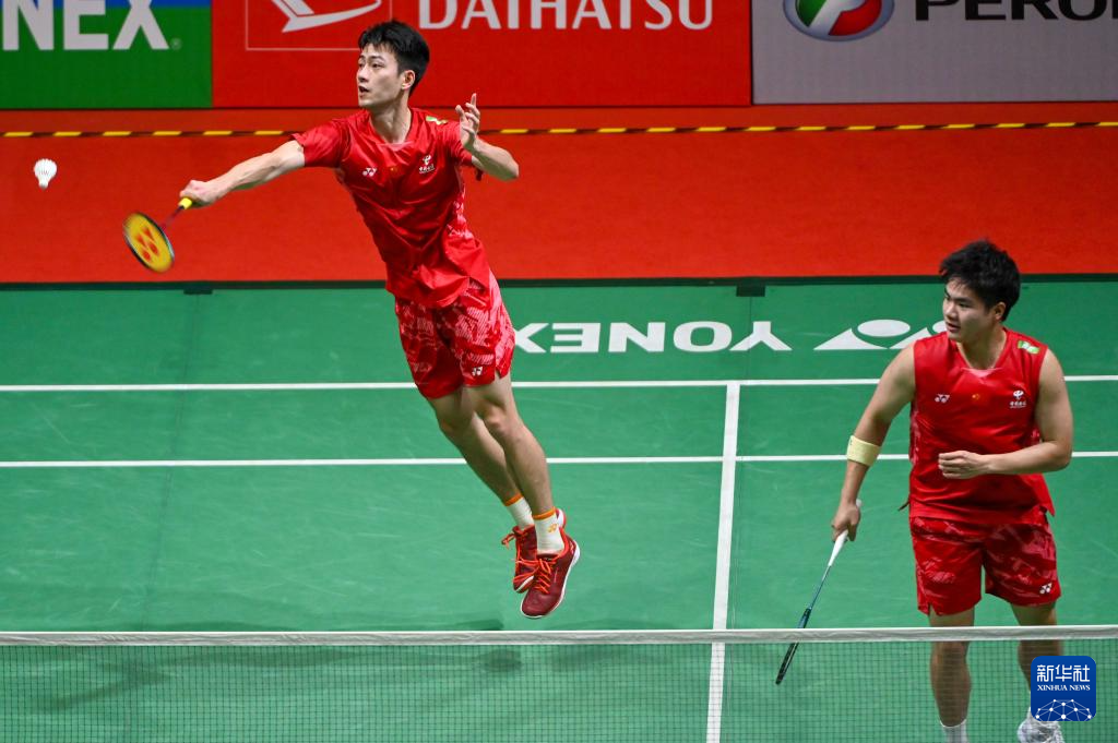 5月22日,梁伟铿(右上)/王昶(左上)在比赛中。