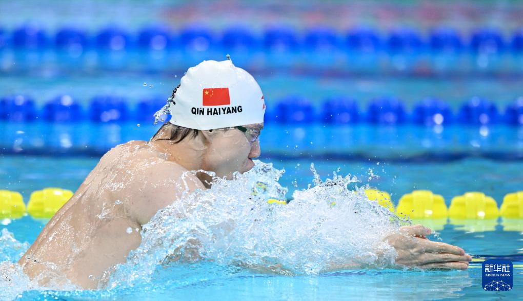 当日,在广东深圳举行的2025年全国游泳冠军赛男子200米蛙泳决赛中,上海安踏队选手覃海洋获得冠军。
