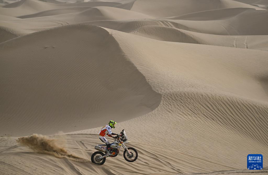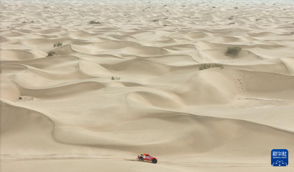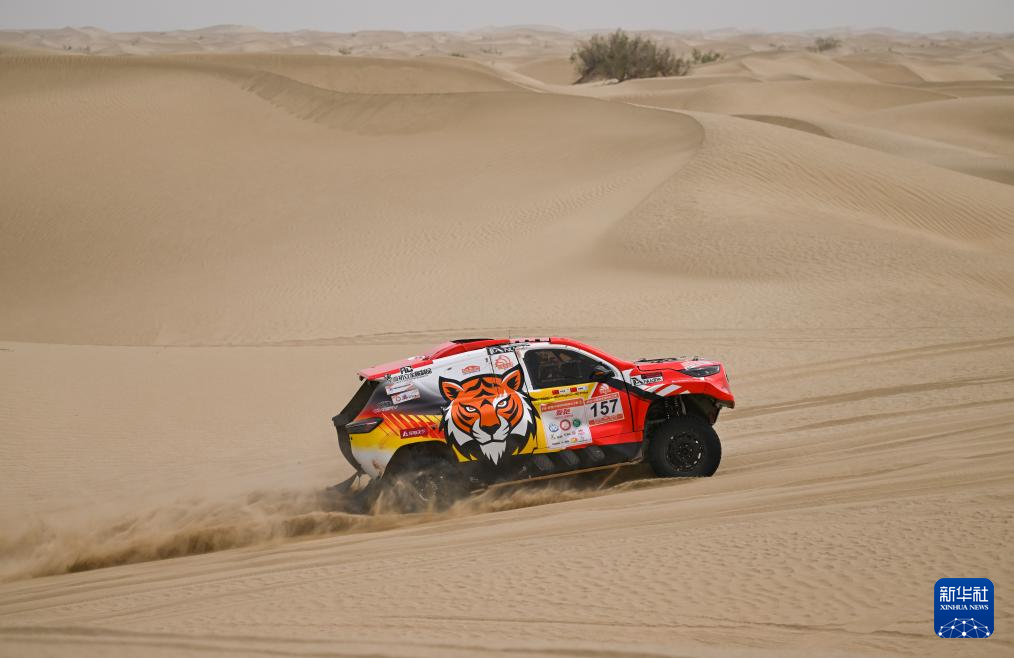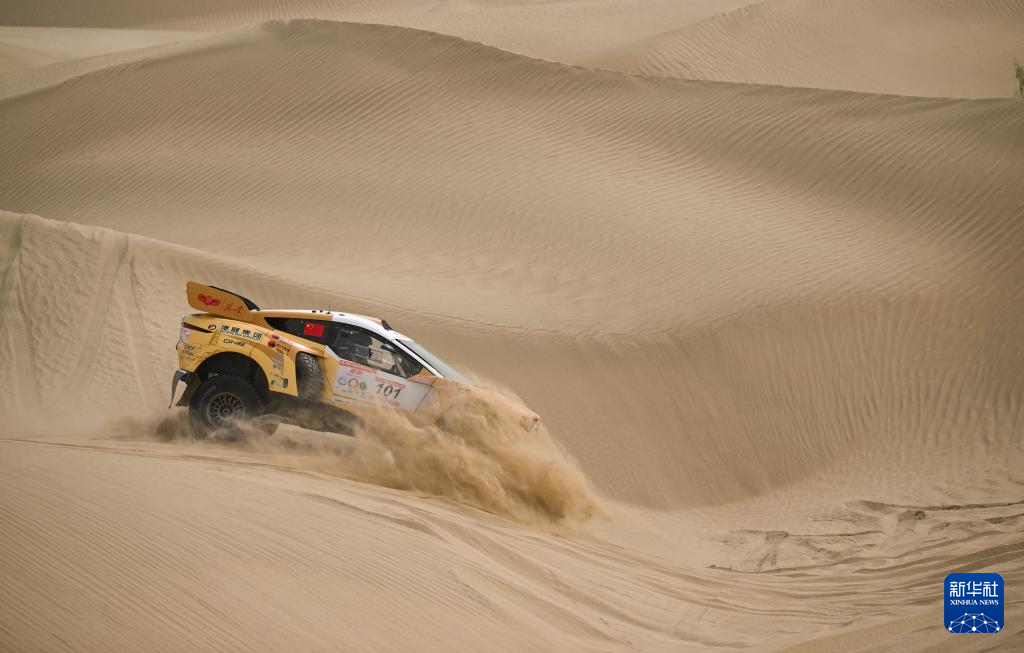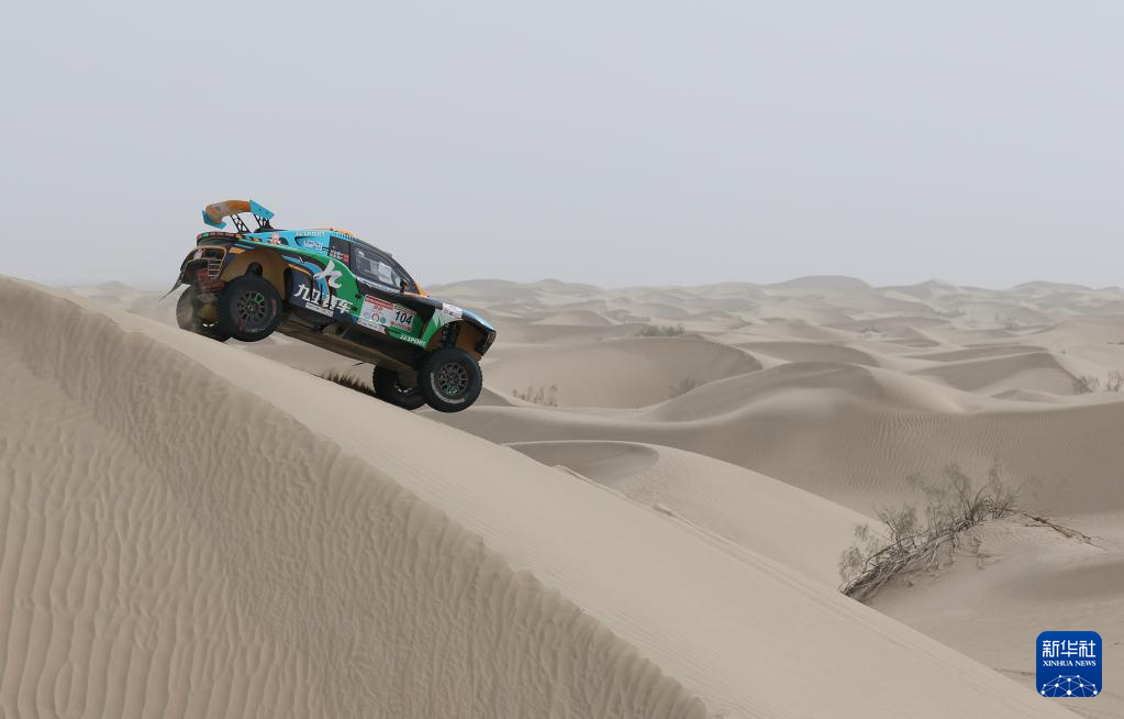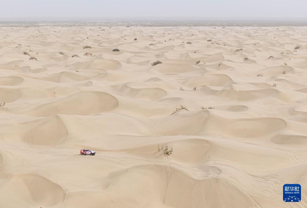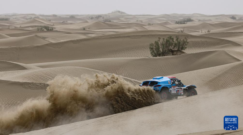 当日,2025中国环塔国际拉力赛第二赛段比赛在新疆阿拉尔市进行。该赛段为全长110多公里的沙漠赛段。