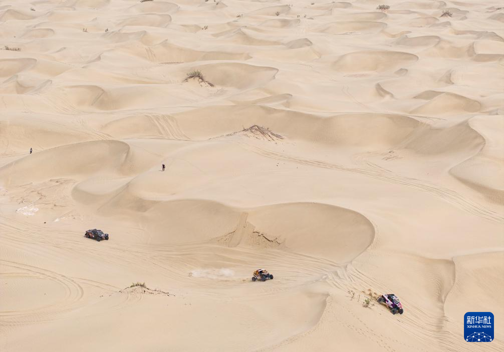 5月22日,长城哈弗车队车手孙相燕、领航员马欣驾驶赛车在比赛中(无人机照片)。
