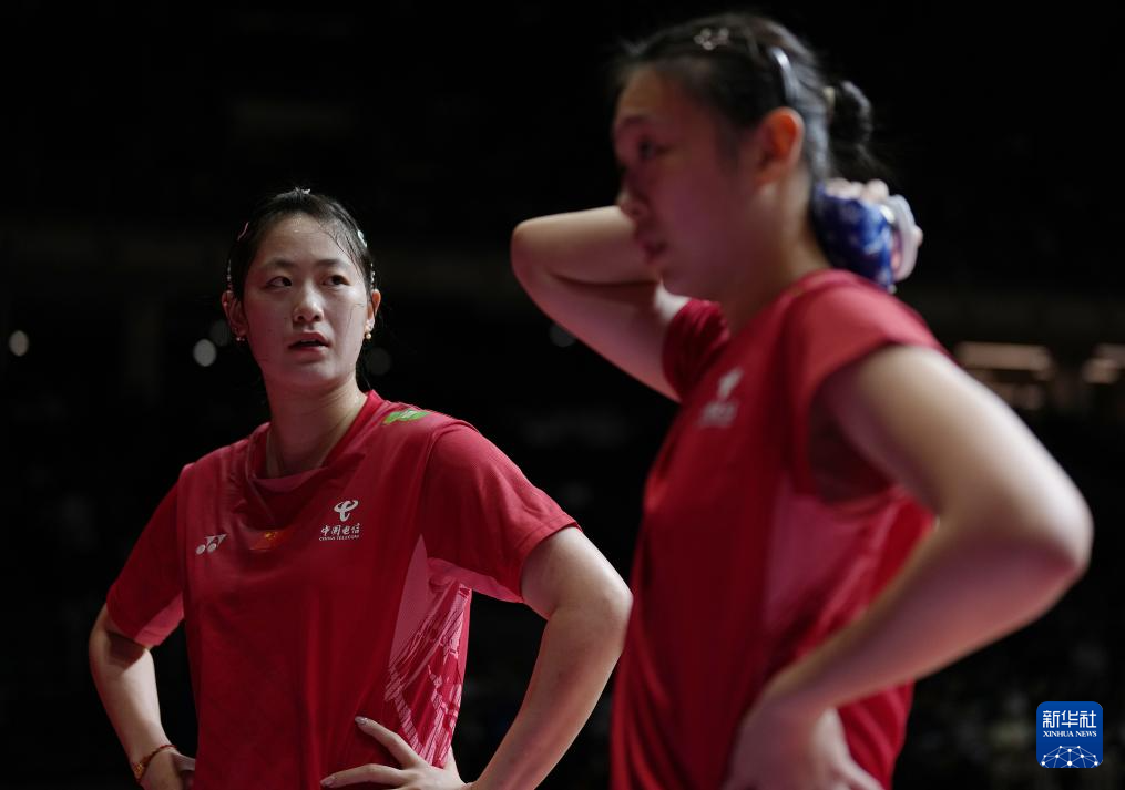 5月22日,坑姝良(左)/李华洲在比赛间隙。