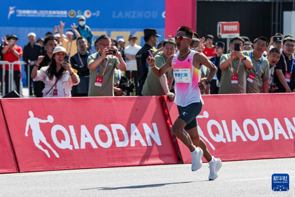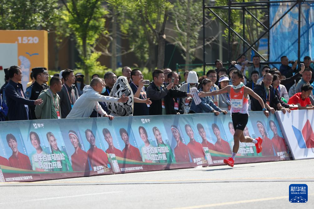 5月25日,中国选手贾俄仁加在比赛中。最终,他以2小时14分26秒的成绩获得马拉松男子组中国籍参赛选手第一名。