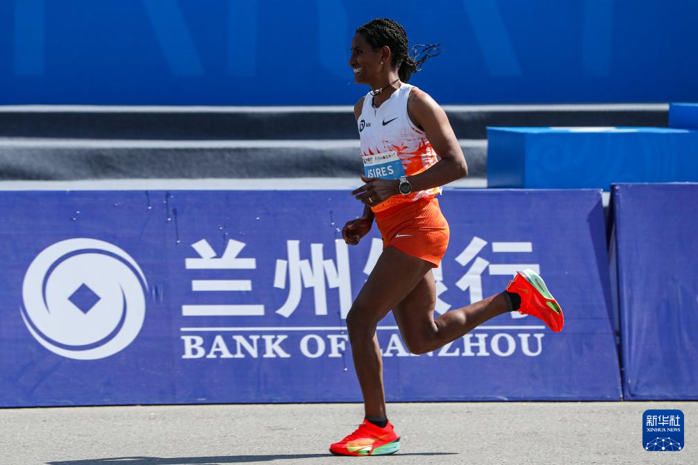 5月25日,埃塞俄比亚选手德吉图·阿齐梅拉夫·阿西雷斯在比赛中冲刺。最终,她以2小时24分12秒的成绩获得马拉松女子组冠军。