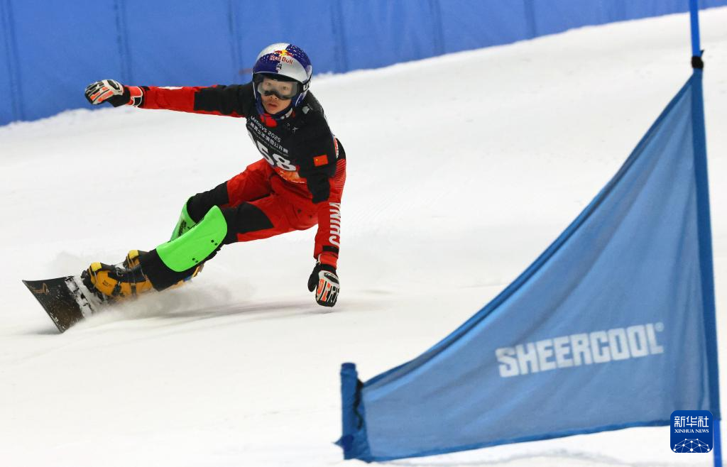 5月25日,史欣冉在单板滑雪大回转U16女子组比赛中。