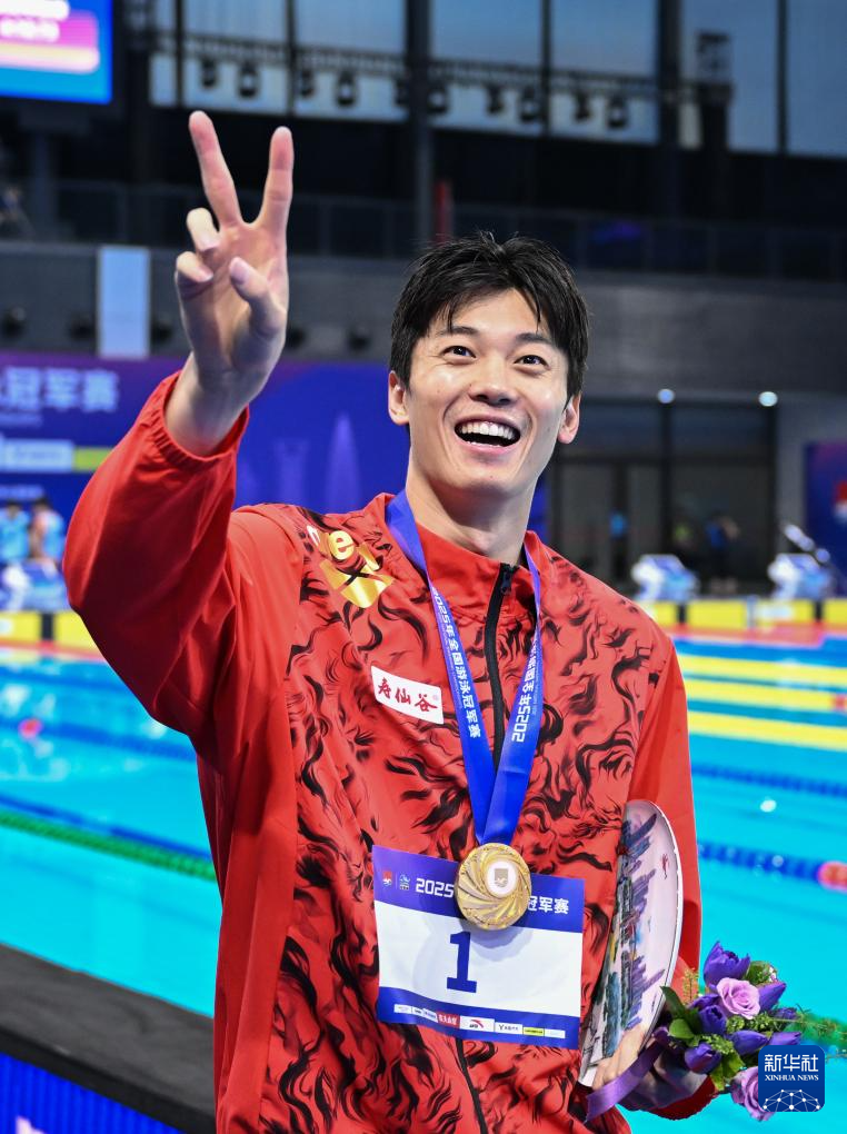 当日,在广东深圳举行的2025年全国游泳冠军赛男子400米个人混合泳决赛中,浙江寿仙谷队选手汪顺以4分10秒64的成绩获得冠军,并打破赛会纪录。