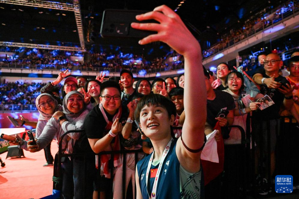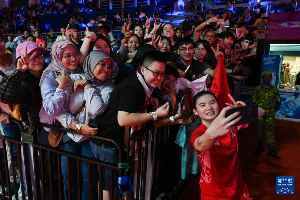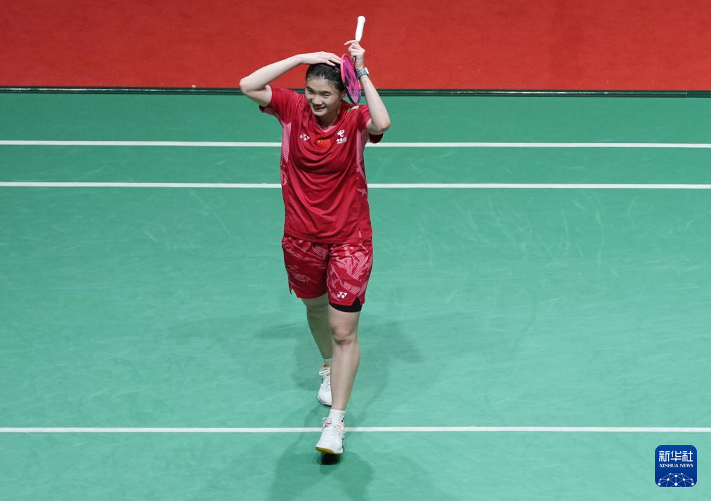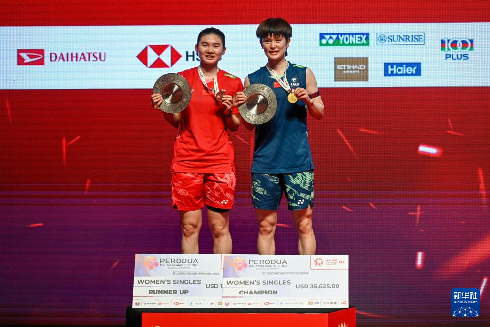 当日,在马来西亚吉隆坡举行的2025年马来西亚羽毛球大师赛女子单打决赛中,中国选手王祉怡2比1战胜队友韩悦,夺得冠军。