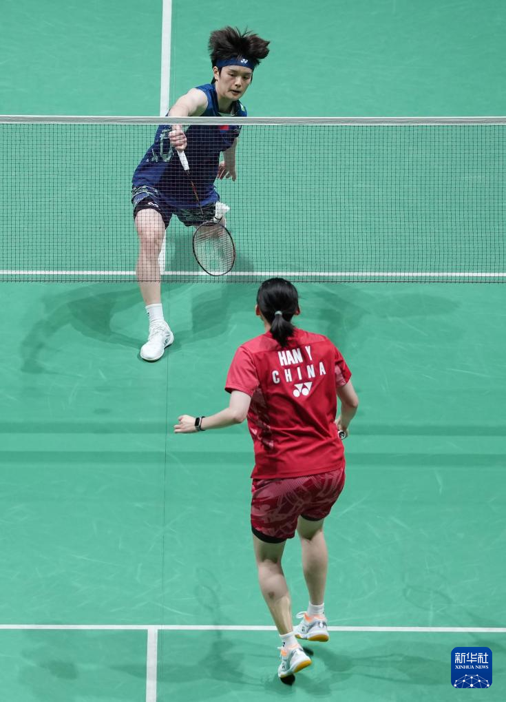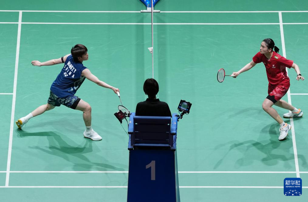 5月25日,王祉怡(右)与韩悦在比赛中。