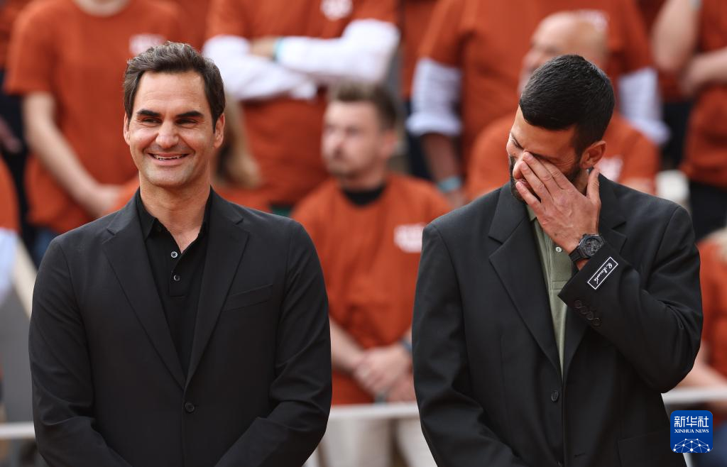 5月25日,费德勒(左)与焦科维奇出席致敬仪式。