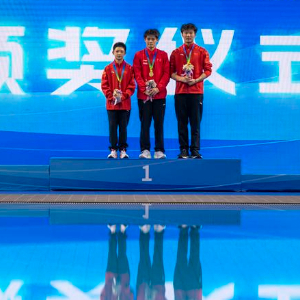 继斩获男双10米台金牌后,广东队选手朱子锋28日再度登顶男子10米台项目,但比赛过程有些波折。领跑首轮后,朱子锋在6245D和307C两个动作上接连失误。第三轮结束后,湖北队选手程子龙排名第一,朱子锋的累计名次则跌至第四位。第四轮,程子龙在207B动作上出现严重失误,仅获得43.20分,而朱子锋高质量完成同一动作,并凭借95.40分的高分重回第一。此后两轮,朱子锋顶住压力,最终以527.20分夺冠。陕西队赵仁杰、白钰鸣分获亚、季军。