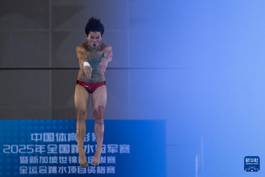 当日,2025年全国跳水冠军赛暨新加坡世锦赛选拔赛、全运会跳水项目资格赛男子10米台决赛在武汉举行。