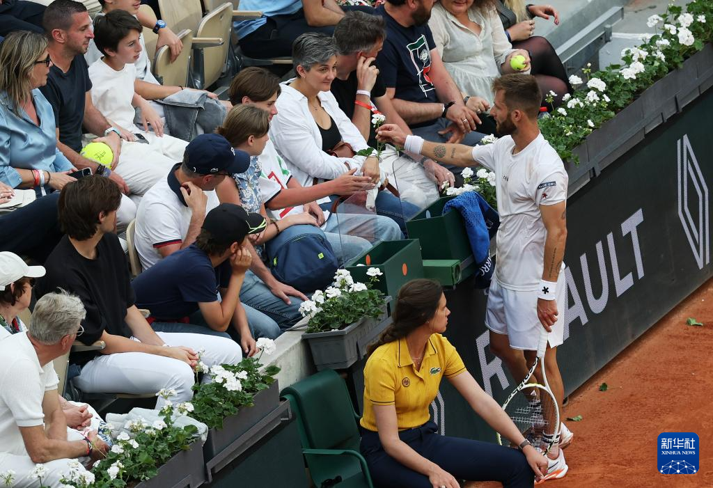 5月29日,穆泰丢分后失态折花,随后将花送给场边观众。