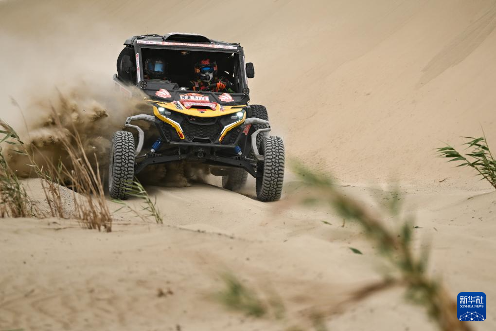 5月30日,新疆八一钢铁车队车手薛鹏鹏、领航员姚勇在比赛中。