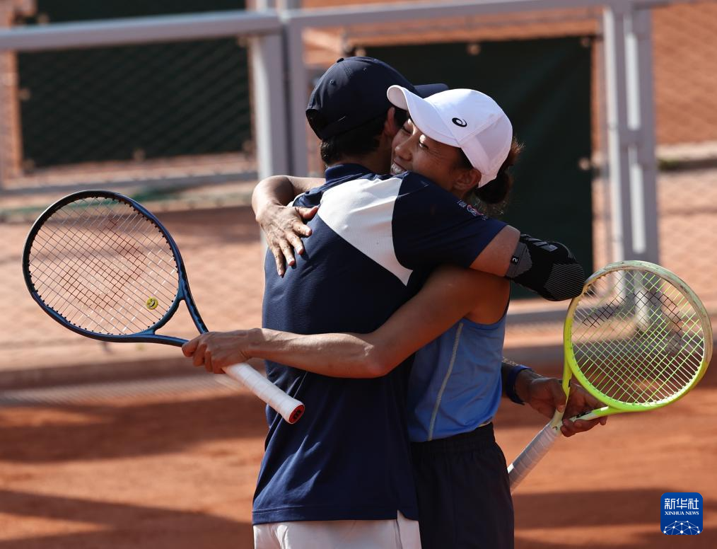 5月31日,张帅(左)/阿雷瓦洛在比赛中庆祝得分。
