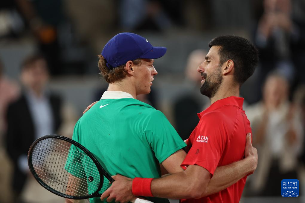 6月6日,辛纳(左)与焦科维奇在比赛后拥抱。