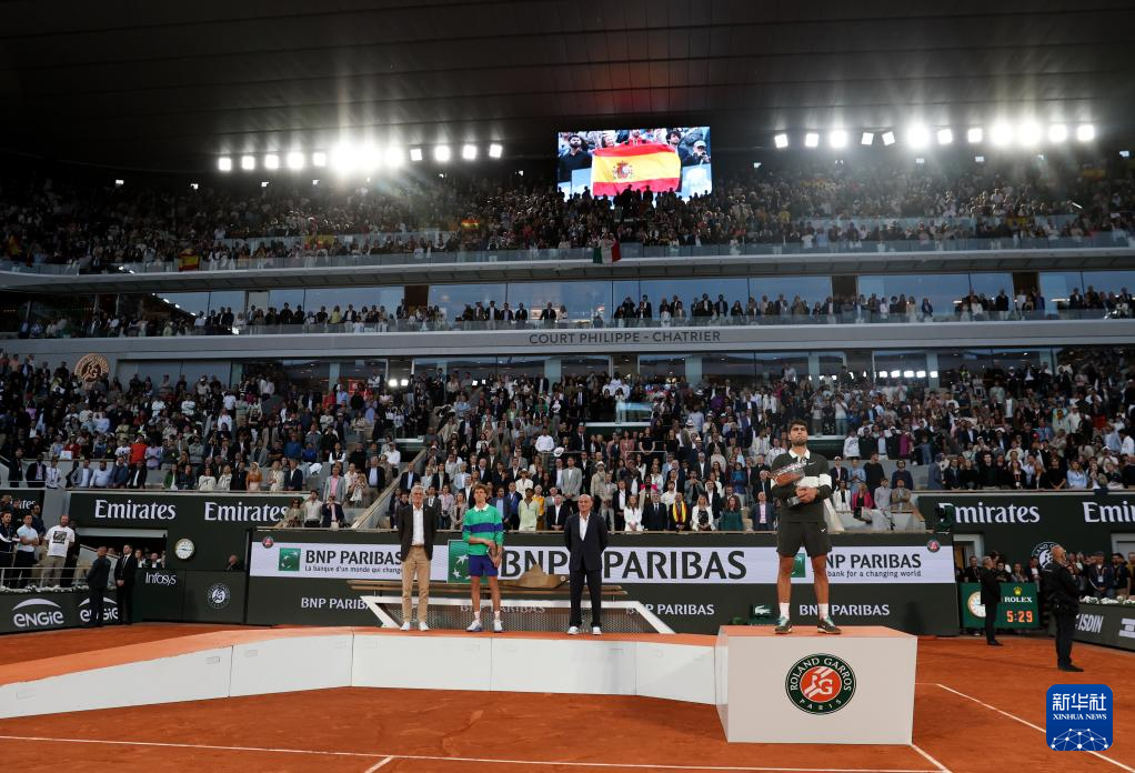 当日,在巴黎进行的2025法国网球公开赛男单决赛中,西班牙选手阿尔卡拉斯3比2战胜意大利选手辛纳,夺得冠军。