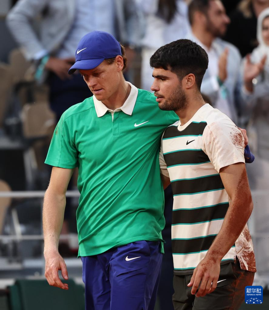 6月8日,阿尔卡拉斯(右)和辛纳在赛后。
