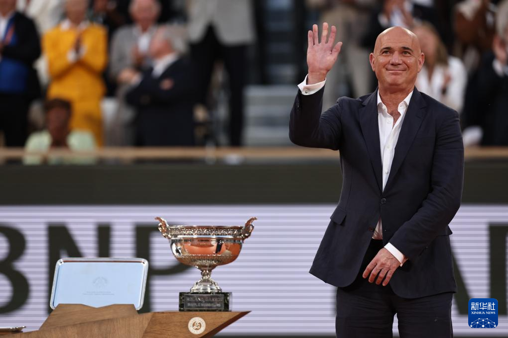 6月8日,网球名宿阿加西在颁奖仪式上。
