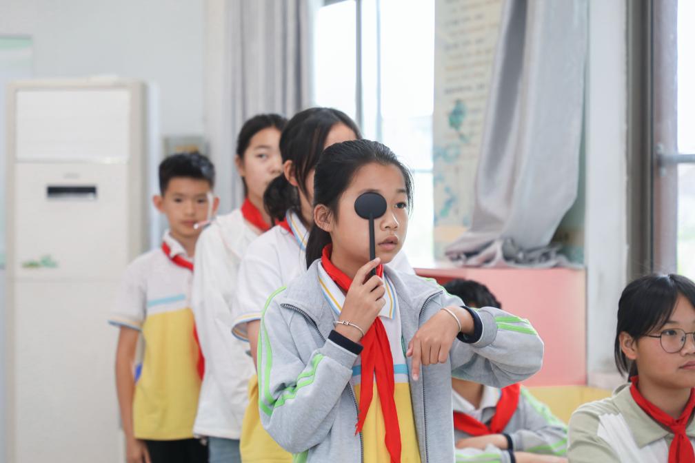 6月5日,浙江吴兴区东林二小的学生们在爱眼知识课上测视力。 新华社记者 徐昱 摄