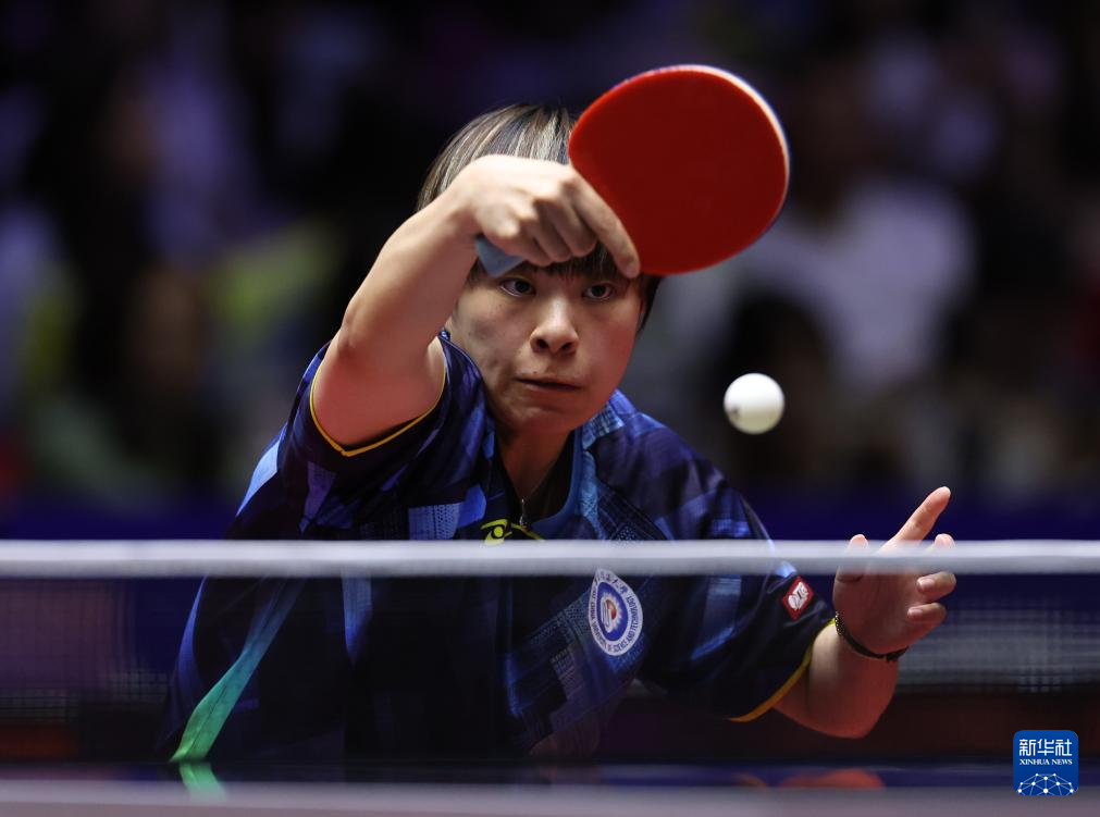 6月11日,深圳大学队选手平野美宇在比赛中回球。她在单打比赛中3比1战胜华东理工大学队选手王晓彤。