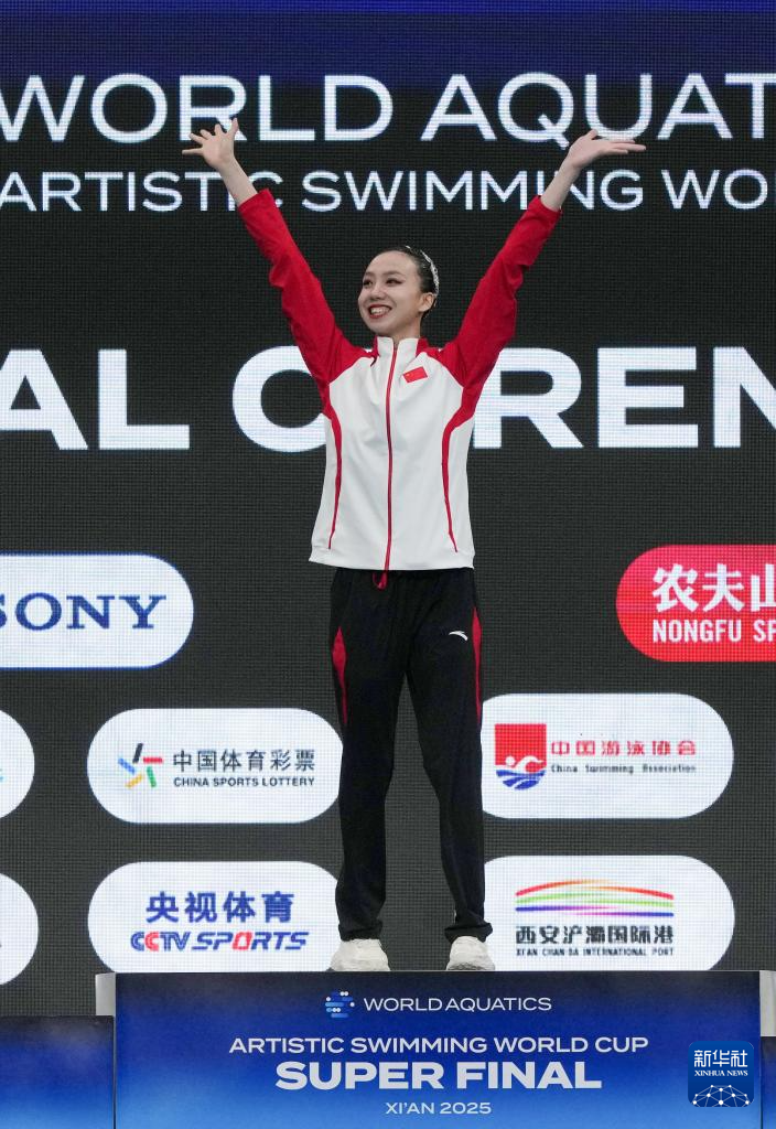 当日,2025年世界泳联花样游泳世界杯总决赛女子单人技术自选决赛在西安奥体中心游泳跳水馆举行。